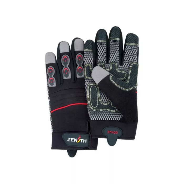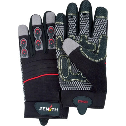 - Textured patches on palm, finger tips and thumb crotch increase protection and durability