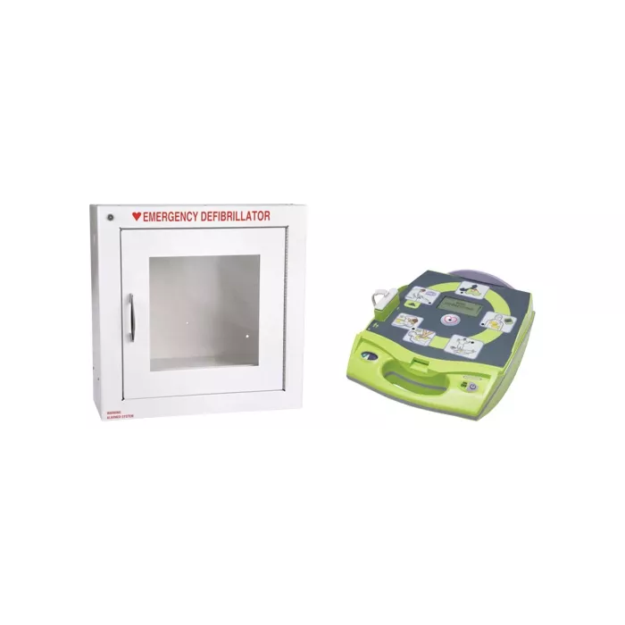 - Includes: (1) Zoll® AED Plus® fully automatic, (1) Set of Zoll® CPR-D-Padz® adult electrodes, (10) Lithium batteries, (1) Soft carry case, (1) Fast response rescue kit, Manuals and orientation DVD, (1) AED Plus® flush alarmed wall cabinet