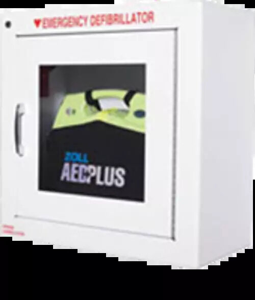 Visibility of your AED Plus is essential so that it is easy to find in an emergency situation. The 9-inch alarmed wall cabinet holds the AED Plus in a carry case with an extra set of electrodes.17.5 x 17.5 x 9 inches (44.45 x 44.45 x 22.86 centimeters)