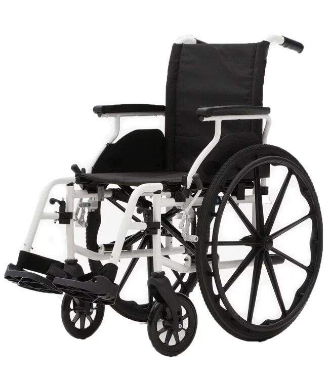 Le fauteuil roulant en aluminium de 18" est conçu pour offrir une mobilité facile et un confort optimal aux utilisateurs. Fabriqué en tube d'aluminium peint en poudre noir, il présente des caractéristiques telles que des accoudoirs rabattables et un dossier pliable pour un transport aisé. Il a une capacité de poids de 300 lbs et est conforme aux normes de sécurité en vigueur.