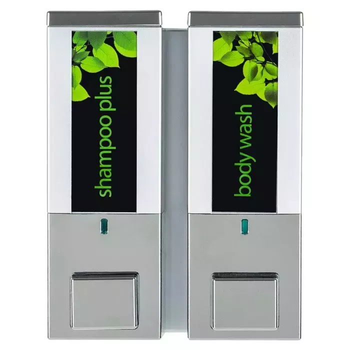 With the iQon Dispenser system, Dispenser Amenities has entered into a new generation of customizableDispensers. The iQon features a completely enclosed, water-proof channel, allowing brand labels to slide easily into the channel, presenting bold product/hotel identification to your guests.