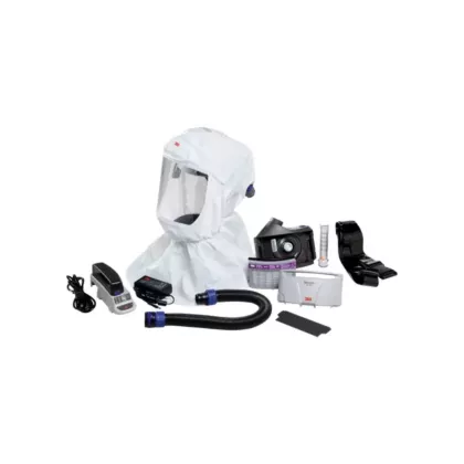 - Comprend : Cagoule avec coiffe simple, APR à épuration d'air motorisé, ceinture facile à nettoyer, batterie longue durée, tube de respiration à longueur autoajustable, chargeur de pile simple, filtre HE, préfiltre, débitmètre