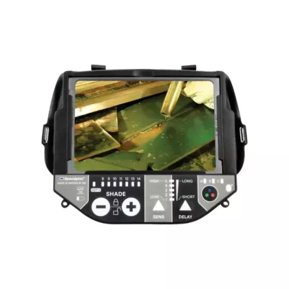 - Technologie de couleur variable permettant au soudeur de choisir parmi trois options (transparent, froid ou chaud), améliorant sa capacité de voir le bain de fusion, le joint et l'arc de soudage