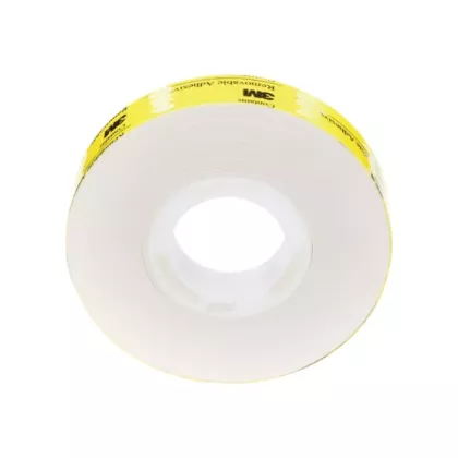 - L'adhésif sur le côté secondaire (le côté exposé) a une faible pégosité qui facilite l'enlèvement et le repositionnement du ruban