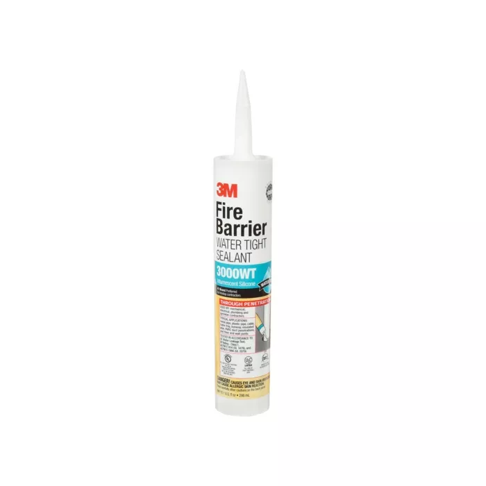 - Le scellant durcit lorsqu'il est exposé à l'humidité de l'atmosphère et forme un joint d'étanchéité ignifuge flexible qui agit également comme une barrière contre les fuites d'eau et la transmission du bruit aérien
