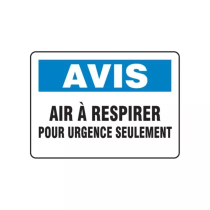 | Légende | Avis; Air À Respirer Pour Urgence Seulement |