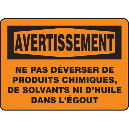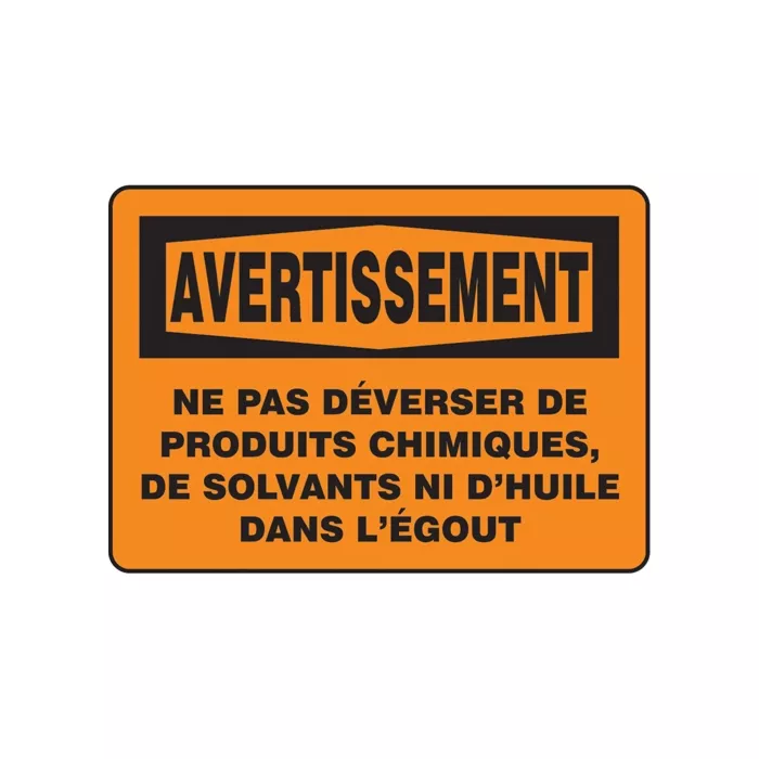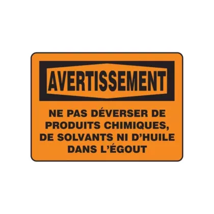 Enseigne « Ne pas déverser de produits chimiques, de solvents ni l'huile dans l'égout »