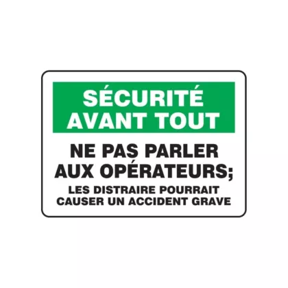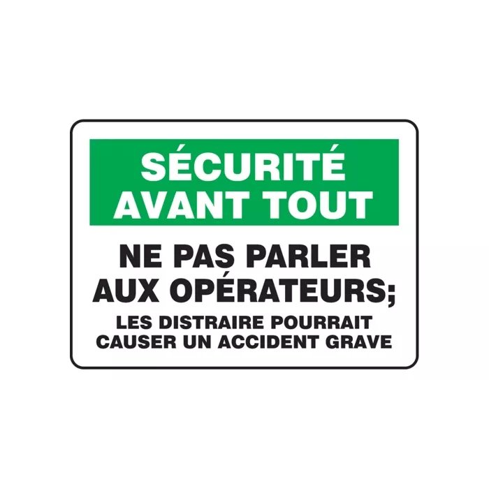 | Légende | Sécurité Avant Tout; Ne Pas Parler Aux Opérateurs; Les Distraire Pourrait Causer un Accident Grave |