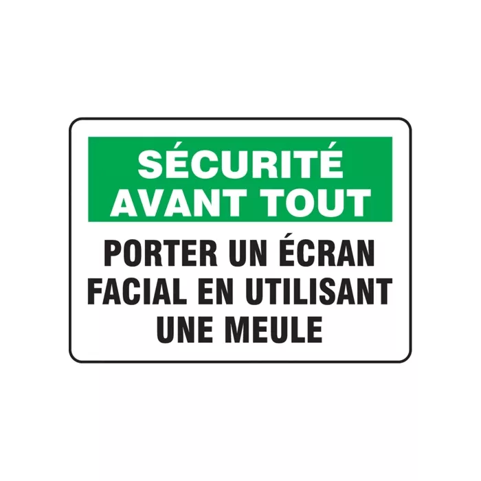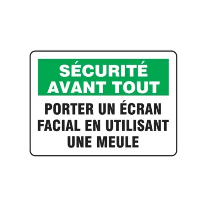 Enseigne « Porter un écran facial en utilisant une meule »
