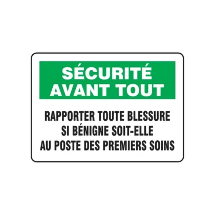 | Légende | Sécurité Avant Tout; Rapporter Toute Blessure Si Bénigne Soit-Elle Au Poste Des Premiers Soins |