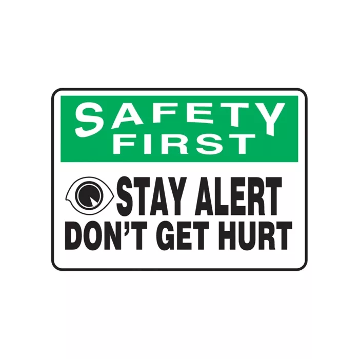| Légende | Safety First; Stay Alert Don't Get Hurt w/Pictogram |