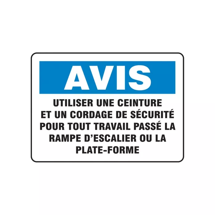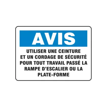 Enseigne « Utiliser une ceinture et un cordage de sécurité »