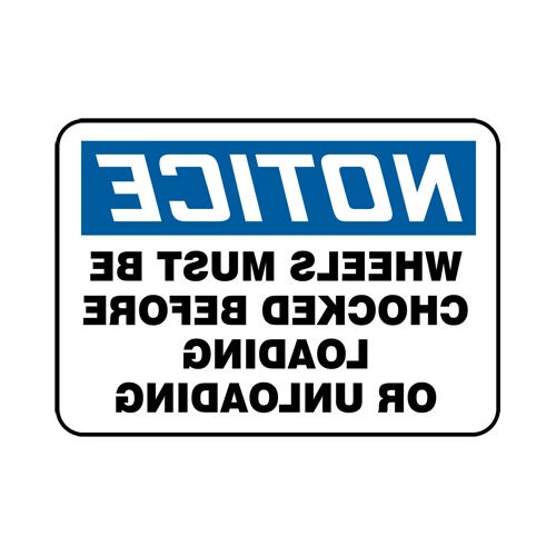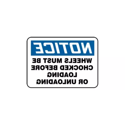 - Enseigne à l'envers permettant aux conducteurs d'en faire la lecture dans le rétroviseur lorsqu'ils reculent pour leur rappeler de caler les roues