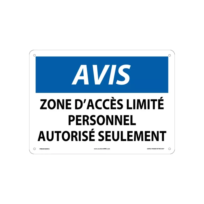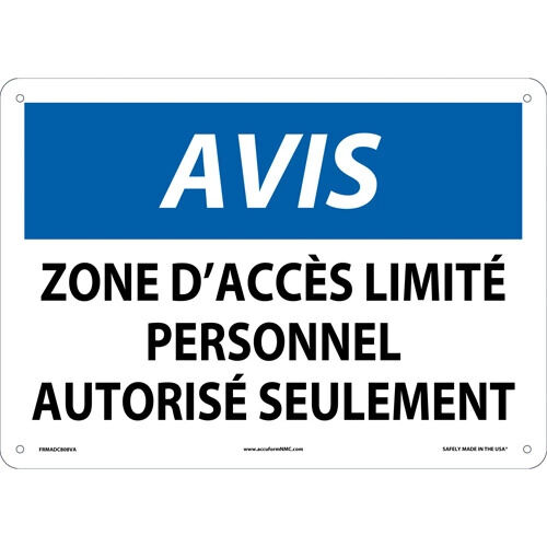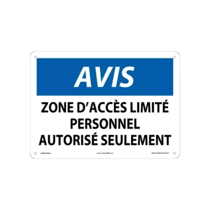 | Légende | Avis; Zone D'Accès Limité Personnel Autorisé Seulement |