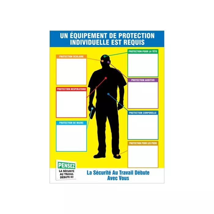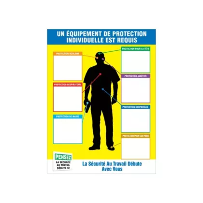 - Gabarit mesurant 24" x 18" avec espaces vierges réservés pour des photos d'équipement de sécurité personnelle, comprises dans le livret d'étiquettes