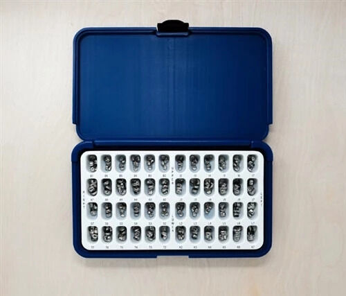 5 crowns each for sizes 48240 CrownsProfessional Storage Tray with labelsAcero 3S Kits come in a secure and durable tray. Our kits contain 5 crowns for each of the 48 sizes for a total of 240 crowns.