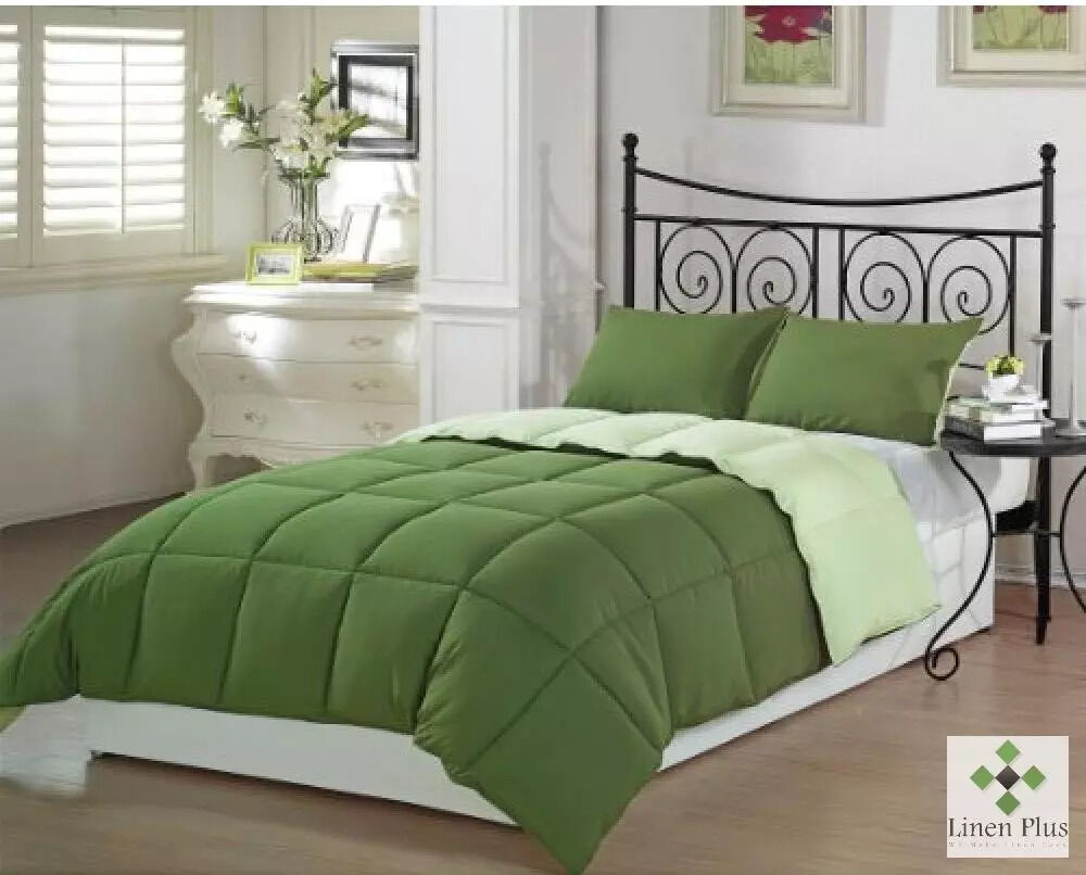 Adonis Hypoallergenic Microfiber Comforters Size 72"x90" Two Toned Reversible Forest Green/Sage