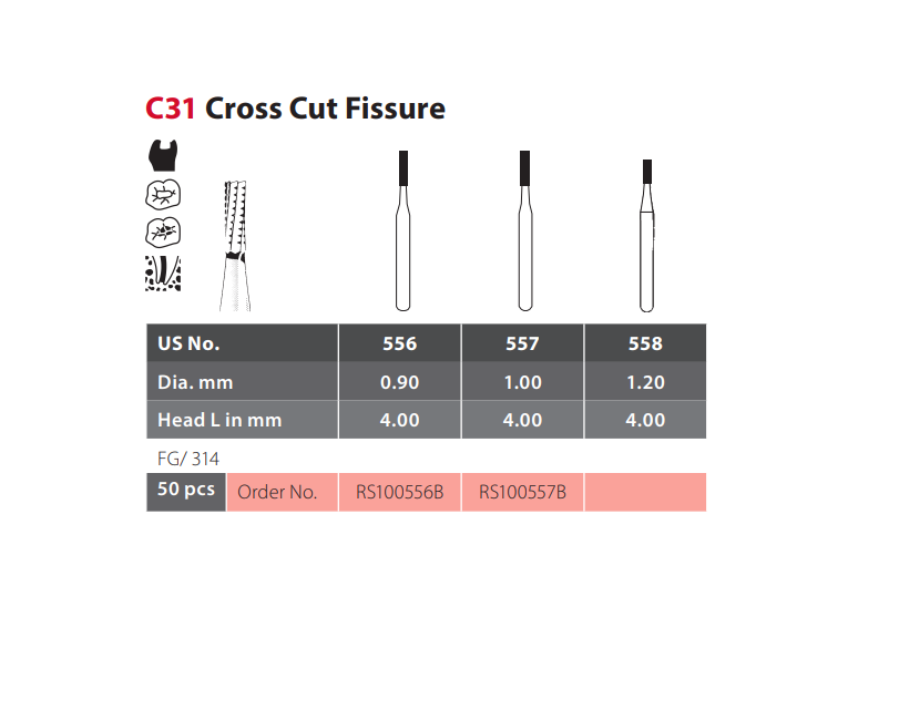 Alpen SteriX FG Carbide Burs C31 Cross Cut Fissure Clinic Packs, 50/package