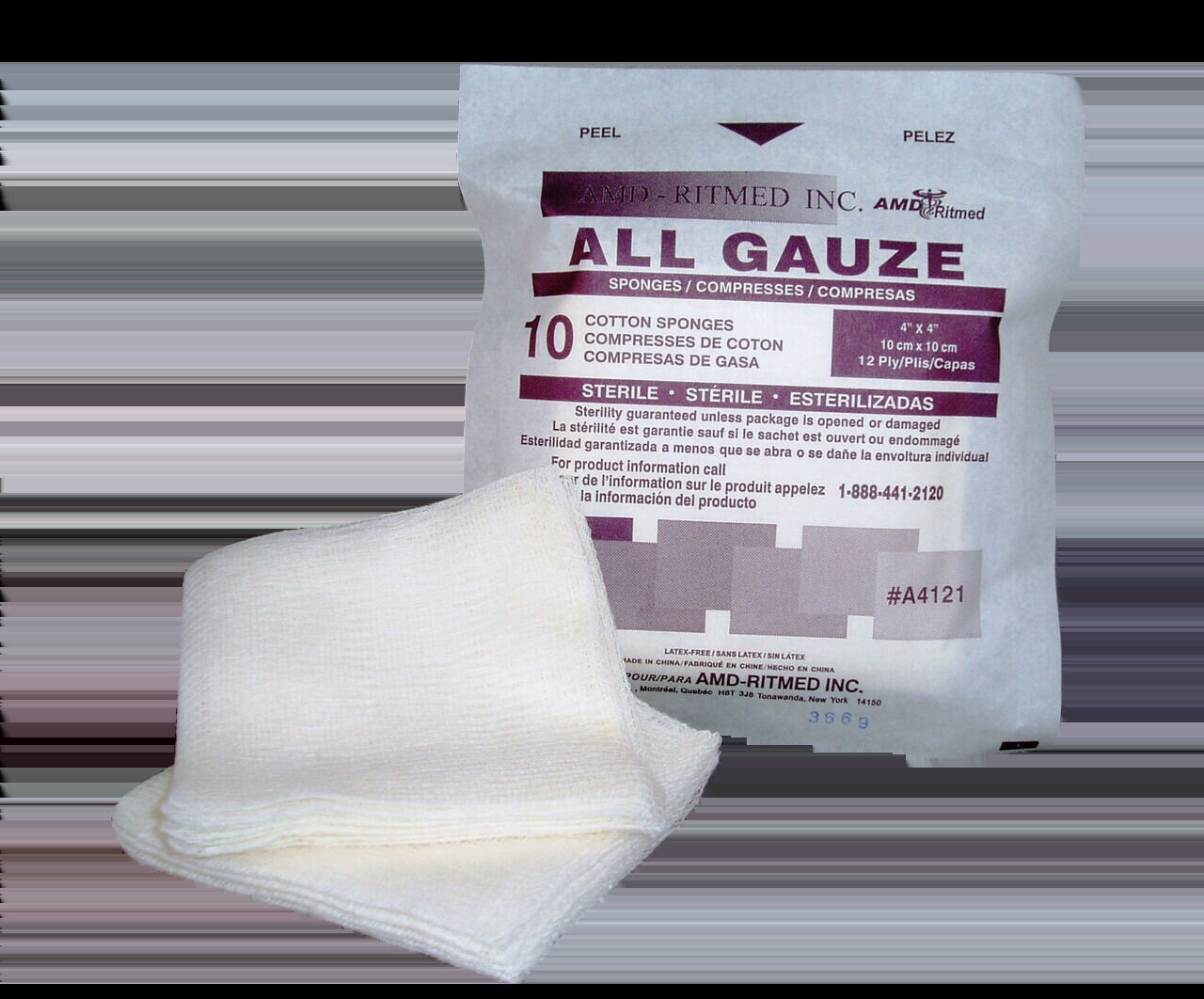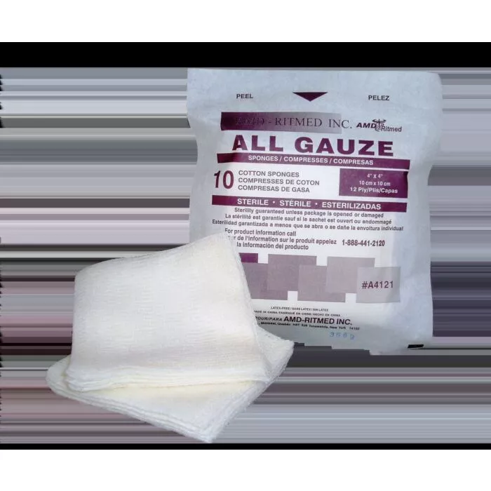 AMD Sterile Gauze Sponge Cotton 4"x4" 12ply 2/pkg, 25pkg/tray