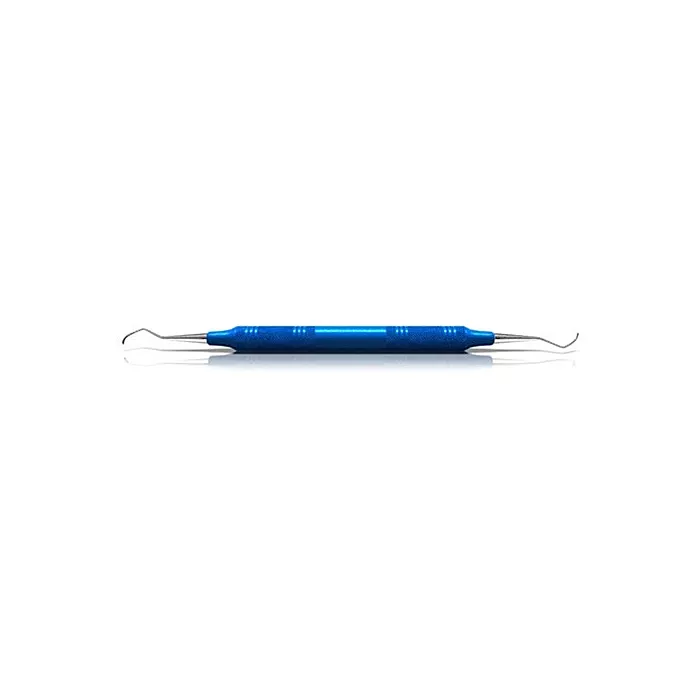 Shorter, more curved and slightly broader blade than Barnhart 5-6. It adapts to concavities of roots in shallow pockets. Rounded toe removes lingual anterior stains. Made with stronger and longer-lasting Talon Tough Stainless Steel.