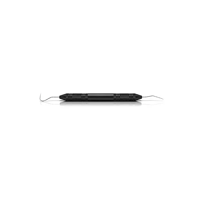Diagnostic instrument used in the detection of caries (decay) and calculus, exploration of pocket characteristics, furcations and restorations. Shepards hook #23 end for caries detection, and #17 end for anterior interproximal caries detection. Also used to check posterior interproximal margins, and subgingival calculus.