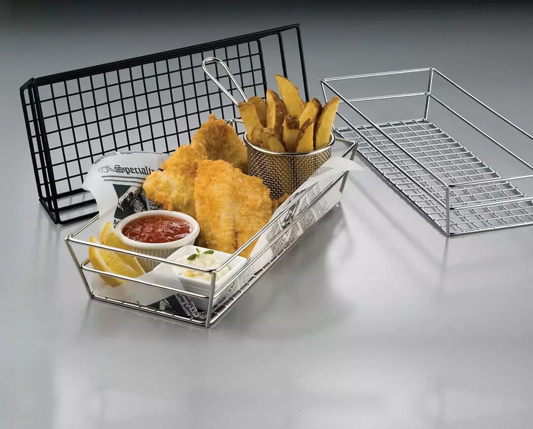American Metalcraft Stainless Steel Grid Rectangular Basket, 13" x 6" x 2.5"