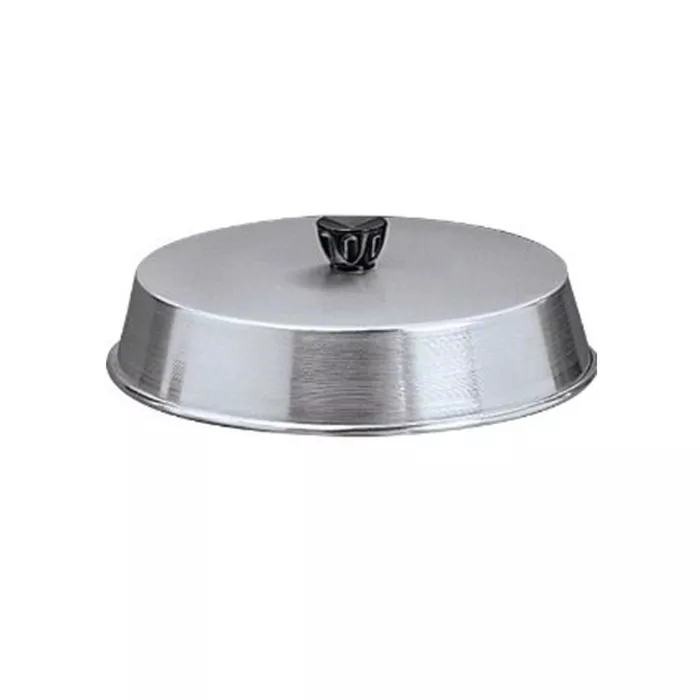 Round aluminum basting cover with black bakelite knob. Full 2" (5 cm) clearance over grill.