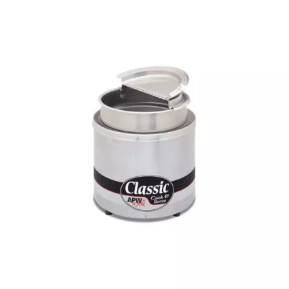 High performance, fast recovery design that is perfect for re-thermalizing refrigerated soup, stews, chili or other food products served out of a round inset. Thermostatically controlled heat system provides fast heat up and recovery. Exterior and interior constructed of stainless steel.