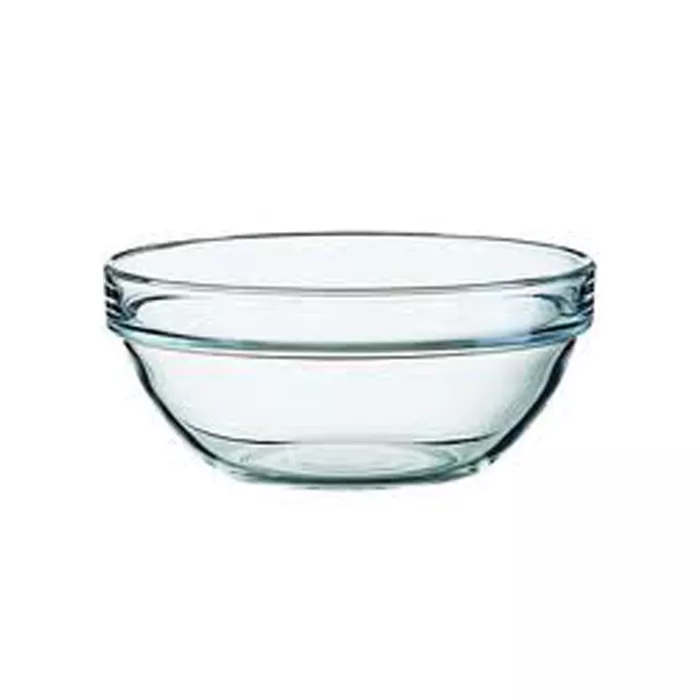 Stackable tempered glass bowl, 3 1/2". Dishwasher and microwave safe.