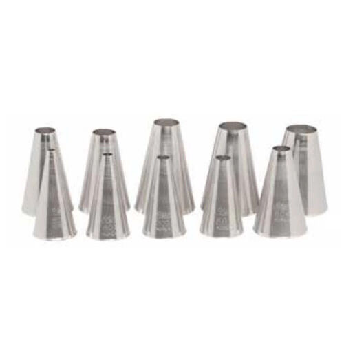 - Set contains: 10 stainless steel pastry tubes sizes 800-809