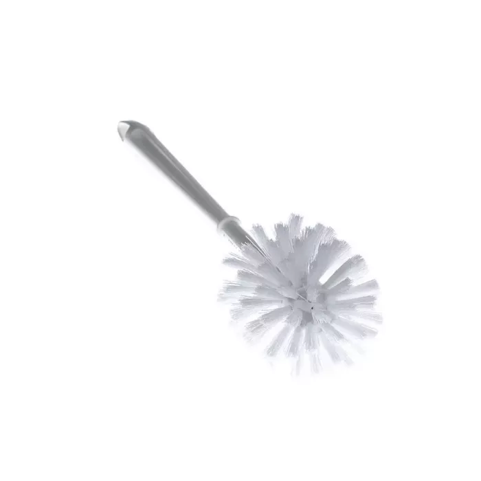 Round toilet bowl brush has a unique round construction allowing you to reach into all areas of the bowl and under the rim.