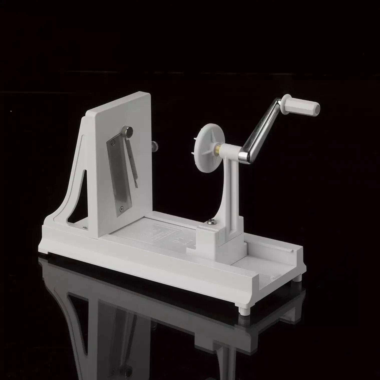 Vegetable turning slicer used to make finely cut carrot spirals; potato, green pepper, or beet strings. Great for salads and makes it easy for you and your family to prepare your favorite dishes in a short period of time. Made in Japan.