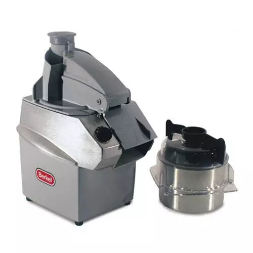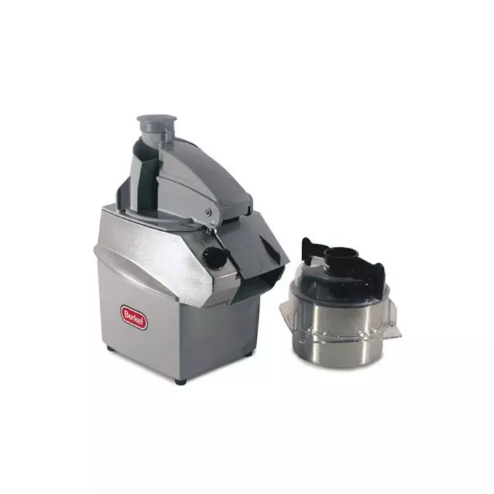 Berkel Model CC34 combination food processor is a high-performance and versatile machine that quickly and conveniently chops, slices, dices, blends and mixes vegetables, fruits, cheese and virtually any other product. The CC34 should not be used to dice or cube cheese or meat. Constructed of heavy-duty aluminum with integrated handles, the compact CC34 is easy to move from one location to another. Stainless steel bowl provides superior durability and long life. The continuous feed attachment includes an automatic start/stop function, feed tube and design that allows the operator to load product with both hands for the fastest possible processing. The exclusive SureSense™ speed setting automatically senses whether the feed head or bowl is attached for perfect processing results. The dual interlock boosts operator protection. The CC34 has a variety of cutting plates to optimize the versatility and productivity of this superior machine.