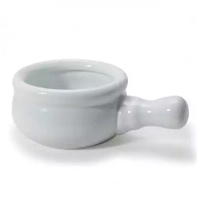 This white porcelain onion soup bowl is the perfect choice for serving onion soup. This bowl is oven, microwave and dishwasher safe.