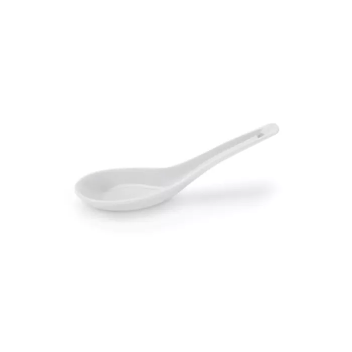 Lotus Spoon, 6", white, porcelain. Oven, microwave & dishwasher safe.