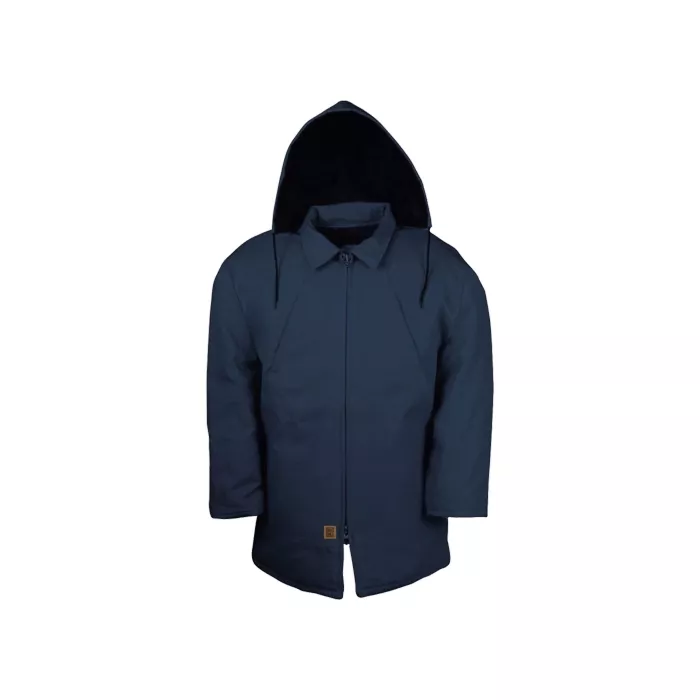 - Capuchon réglable avec cordon et quatre boutons-pression à l'arrière du col