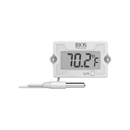 - Vaste plage de températures et sonde étanche permettant de contrôler les températures de réfrigérateurs et de congélateurs ainsi que la température de l'eau de bain