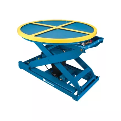 - Cadre robuste d'acier de construction mesurant à la base 24 1/3" x 49"; le diamètre de la table tournante est de 43"; *Informez-vous sur les lève-palettes EZ Loader en acier inoxydable