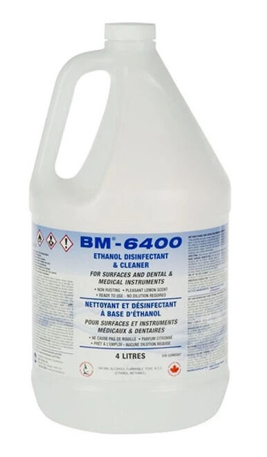 This solution disinfects hard surfaces, such as counter tops, cabinets, lab areas, chairs, etc. Spray solution directly unto surfaces and wipe. It can also be used as a soaking solution to pre-clean or decontaminate critical or semi-critical medical devices prior to further sterilization steps. Solution can also be used for disinfecting and soaking non-critical instruments. 4 Litres/bottle.