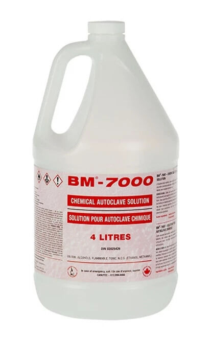 Bactericidal solution, prepared by special process for use with chemical autoclaves for the sterilization of instruments. 4 Litres/bottle.