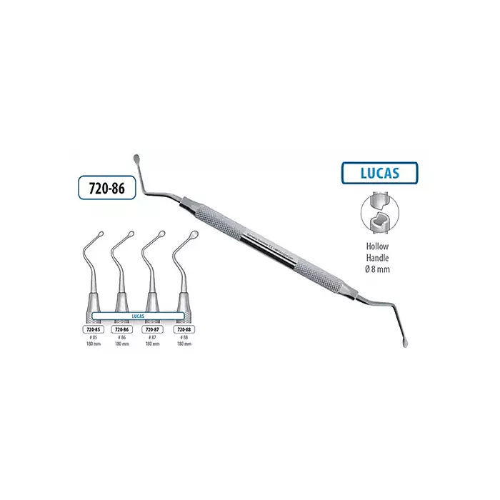 Bone Curette Lucas # 86Length: 180mmMaterial: Martensitic Stainless Steel
