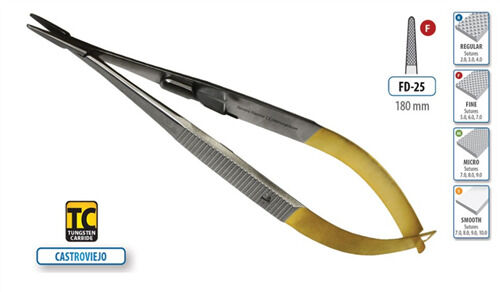 Castroviejo Needle HolderLength: 180mmMaterial: Tungsten Carbide Inserts