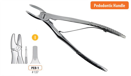 Extraction Forceps Paediatric Handle for Upper IncisorsEnglish Pattern Hinge Screw Joint (+)TorqueMaterial: Martensitic Stainless Steel