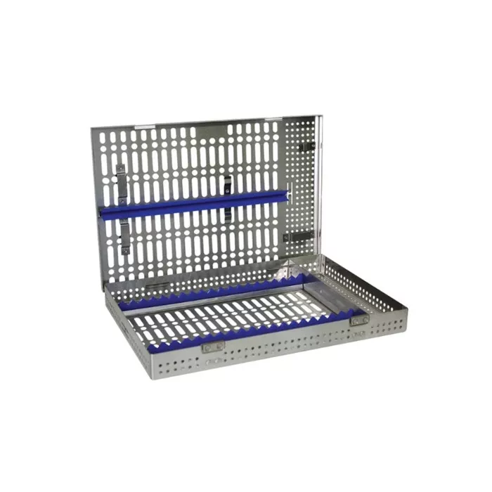 The cassette is designed for user convenience. It features a hinged lid that opens and closes smoothly, allowing for easy loading and unloading of instruments. Additionally, the cassette is easy to clean and maintain, ensuring a hygienic storage solution for your instruments.