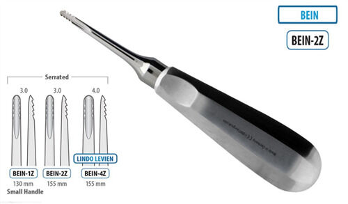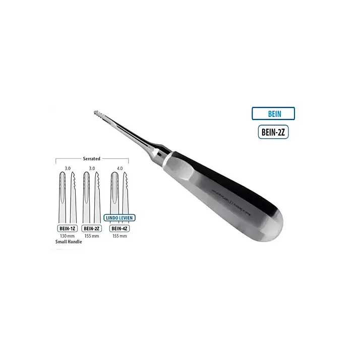 Root Elevator Bein Serrated 3.00mmLength: 155mmMaterial: Martensitic Stainless SteelUsed to loosen the tooth from the periodontal ligament and ease extraction.