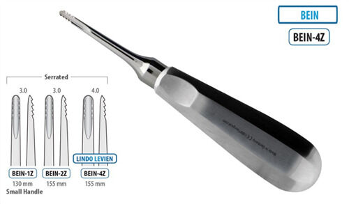 Root Elevator Bein Serrated 4.00mmLength: 155mmMaterial: Martensitic Stainless SteelUsed to loosen the tooth from the periodontal ligament and ease extraction.