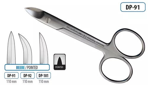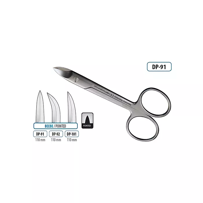 Scissors Beebe Pointed and SharpLength: 110mmMaterial: Martensitic Stainless Steel