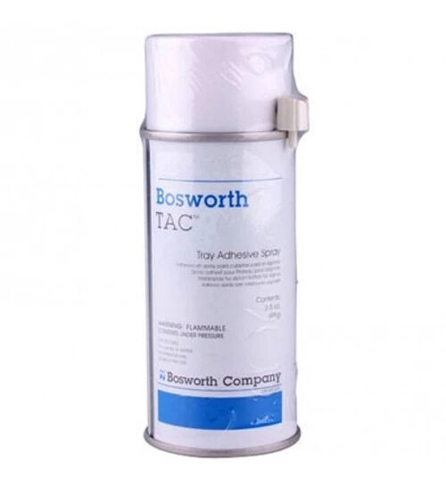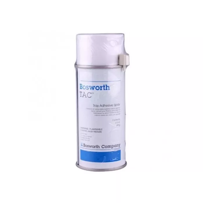 TAC Tray Adhesive Compound is a leading tray adhesive compound available in convenient spray cans or brush-on liquid for use with alginate impression materials. TAC Tray Adhesive Compound securely holds the alginate in the tray when the impression is removed from the patient’s mouth. TAC Tray Adhesive Compound is alcohol-based for faster drying and easier clean-up and can be dissolved with Isopropyl Alcohol.