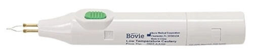 Bovie manufactures four different cauteries specifically designed for ophthalmology. These Patent Numbers US 9.283.023 B2 and US D751,707 S cauteries have an impressive four-year shelf-life and are quite simply the best cauteries ever made. With a variety of low temperatures and fine tips the surgeon is assured of precise pinpoint hemostasis. All disposable cauteries are individually packaged sterile 10 per box.