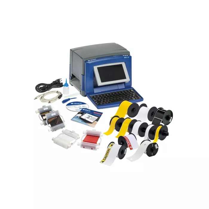 - Comprend: (1) imprimante S3100-W, (1) suite logicielle Brady Workstation SFID, (1) rouleau d'étiquettes 4" B-595 en vinyle blanc, (1) rouleau d'étiquettes 2.25" B-595 en vinyle blanc, (1) rouleau d'étiquettes 1.125" B-595 en vinyle blanc, (1) rouleau d'étiquettes 4" B-595 en vinyle jaune, (1) rouleau d'étiquettes 2.25" B-595 en vinyle jaune, (1) rouleau d'étiquettes 1.125" B-595 en vinyle jaune, (1) rouleau d'étiquettes 2.5" x 3" B-593 noires pour panneaux, (1) rouleau d'étiquettes d'indication de danger ANSI 4" x 6" B-595, (1) rouleau d'étiquettes mise en garde ANSI 4" x 6" B-595, (1) rouleau d'étiquettes 2.25" B-584 jaune réfléchissant, (1) rouleau de carton pour étiquettes blanc 4.25" B-551, (2) rubans d'impression noirs, (1) ruban d'impression blanc, (1) ruban d'impression rouge, (1) cordon d'alimentation, (1) câble USB, (1) carte réseau, (1) logiciel de pilotage sur CD, (1) stylet, (1) trousse de nettoyage, (1) outil de nettoyage de coupeur, (1) guide de démarrage rapide et porte-documents